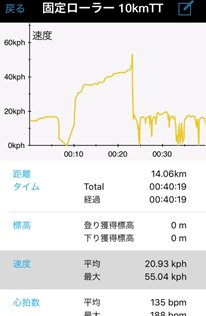 疲労を抜いて調子良し。1ヶ月前の自分との比較をするため、固定ローラーでTTをする。先日のレースではかなり上体が起きてしまっていたので動画を撮りながら低い姿勢になるよう意識。まだまだ低くできるはず。10kmTTをするつもりが勘違いで8kmTTになってしまったが、1ヶ月前より重いギアをほぼ同じケイデンス(105rpm)で回せている。アップ・ダウン込みで14km、40分。