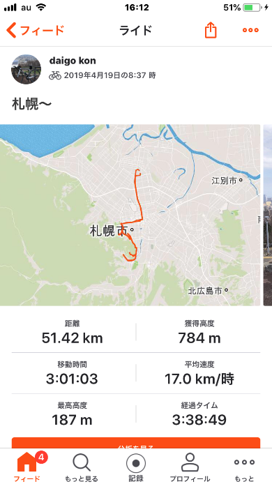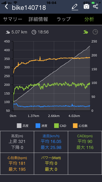 サイコンの方がうまく記録できていなかったので、ストラバのデータ。
