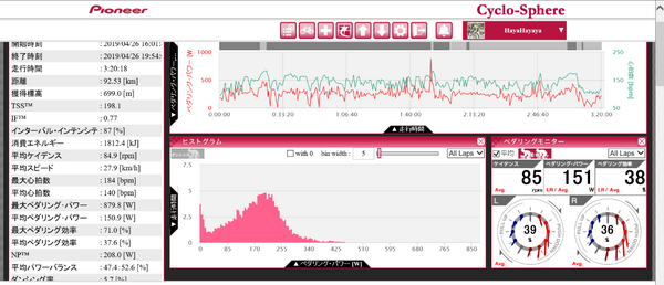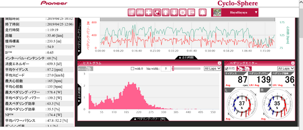 結構パワー出ている?と思ったが普通の値とタイムだった。