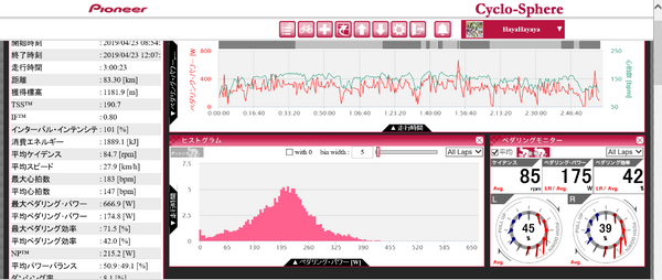 その割にはFTP以上で踏んでしまう瞬間があった、軽いギアで回す意識をしないと…