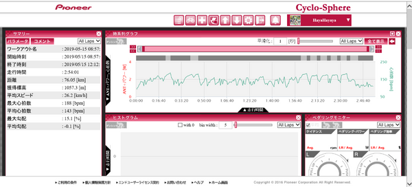 この後は強度を上げられないのでチンタラLSDモードに。加えて50㎞超えた辺りから尻の左側の肌が痛くなってくる。