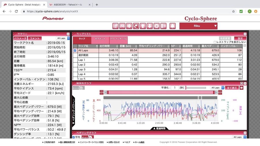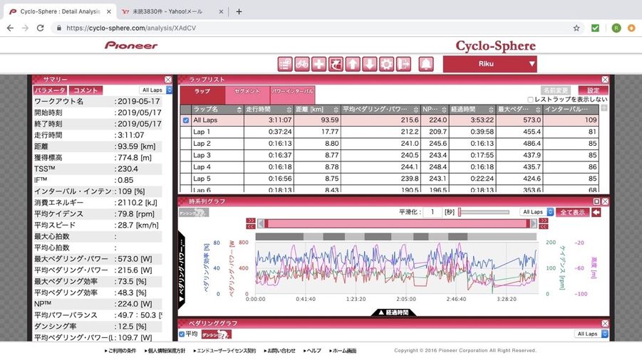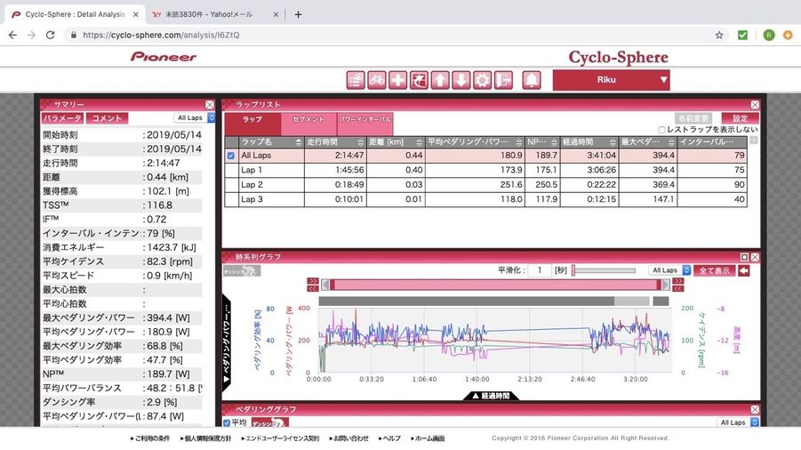 3周目には、今まででの周回練習の中でもかなり高い平均パワーが出ました。