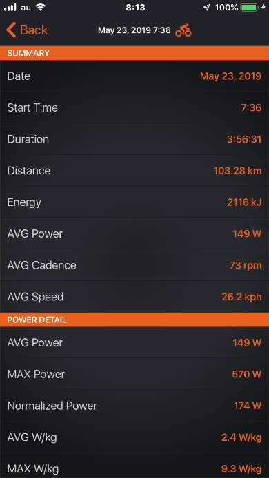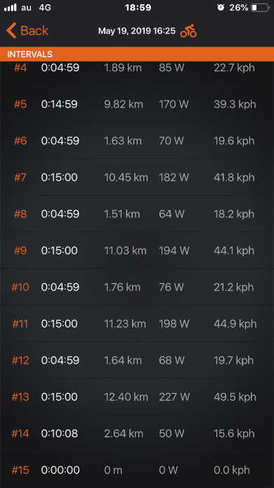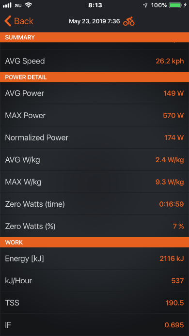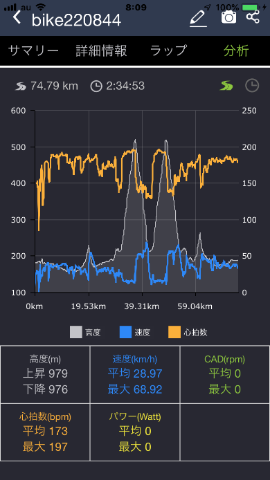 時間も遅く、暗かったことや2本目であったことなどで平均Wは少し低めです。
