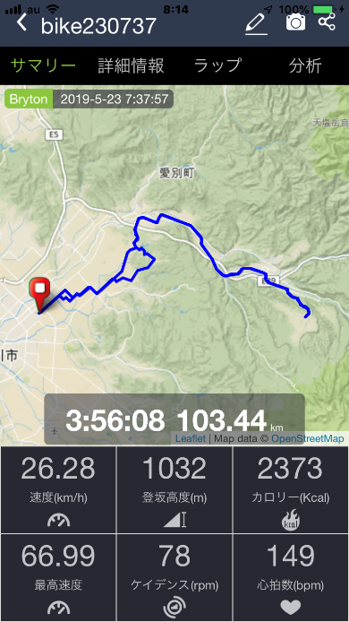 長距離を乗りたいと考え漕ぎましたが、4時間が乗れる時間の限界でしたので103㎞となりました。