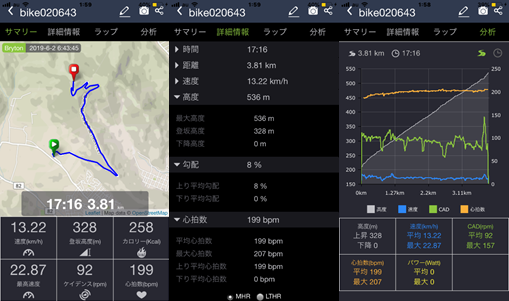 コース自体は前半は斜度が緩く後半に10%越えの区間が2つほどあってラストの80mぐらいも10%ぐらいの斜度を登ってフィニッシュというコースでした。