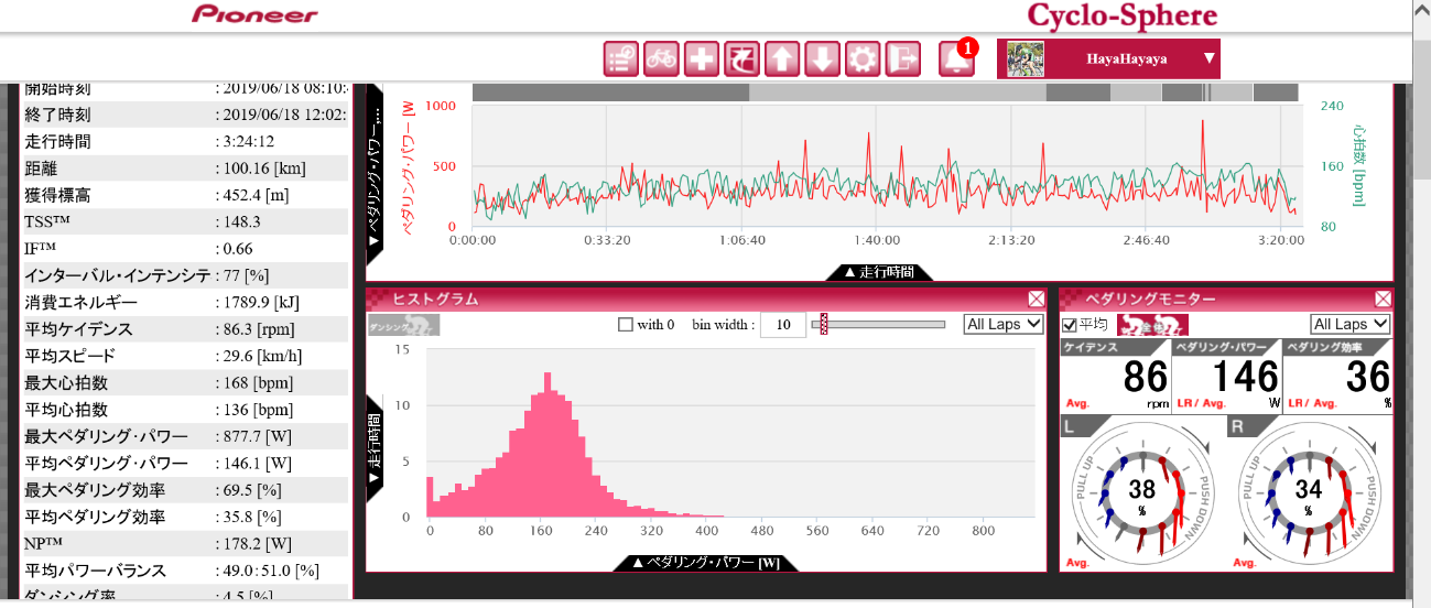 筋肉痛が抜けていないのと疲れているのとで高強度が出せないのでLSD。乗った後の方が脚は軽くなった気がする