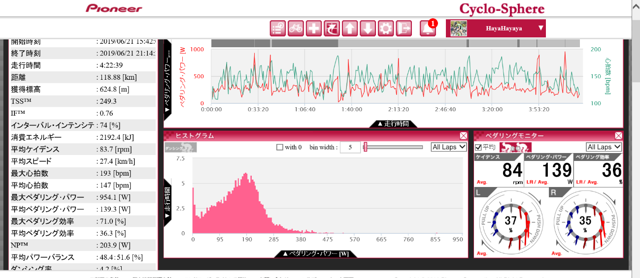 最後に下りからの登り返しでスプリント、Max954w/ケイデンス120。うーん低い。スプリント苦手なのでやりたくない(やるたびにあまりのパワーの低さに絶望する)が、苦手だからこそ練習しないと