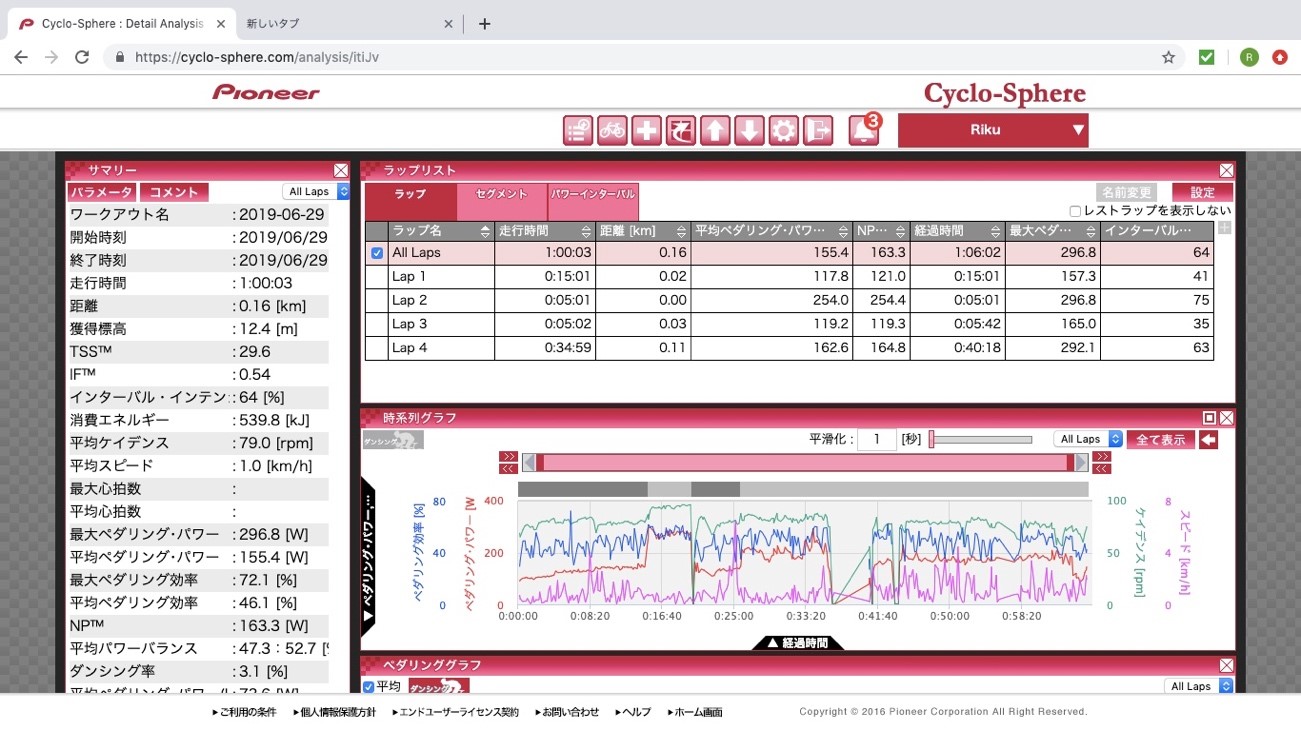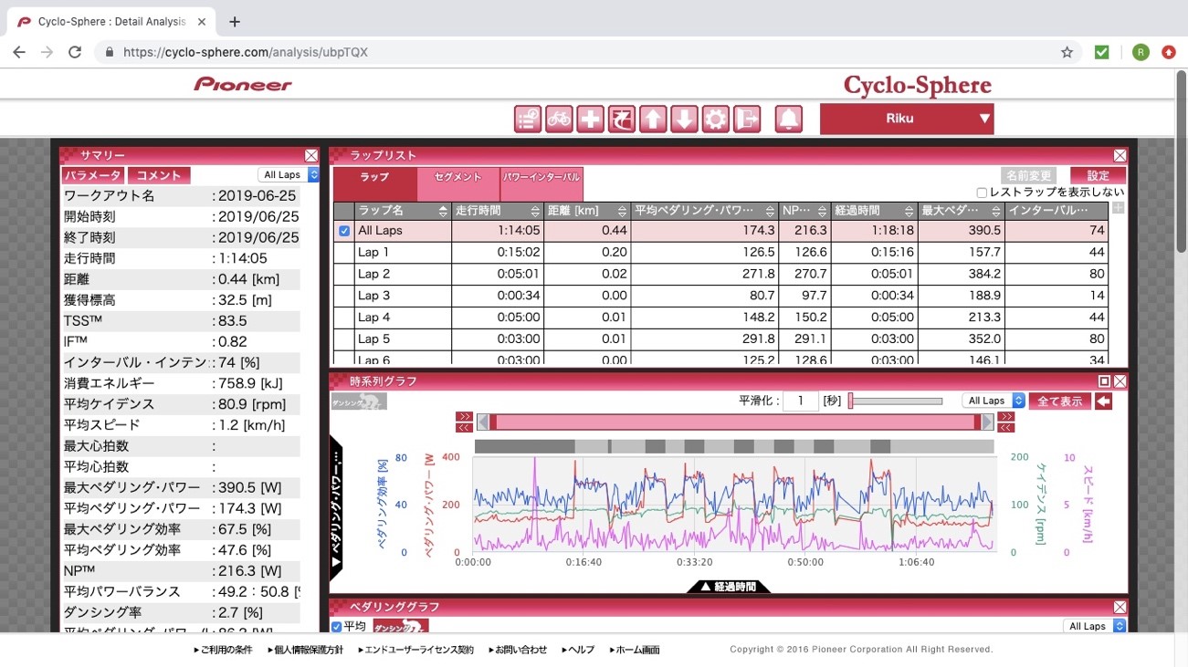 平均パワー:174.3w