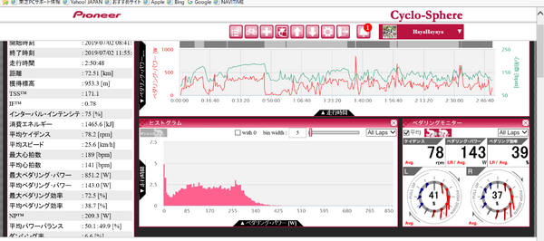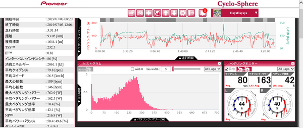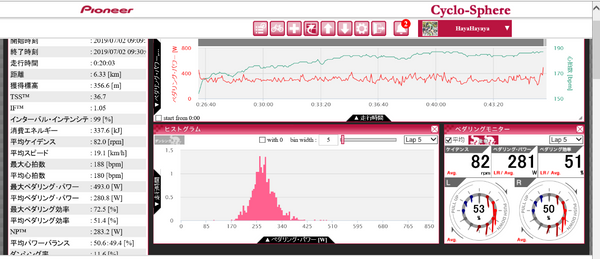 270wを切らないように意識してペーシング、NPと平均パワーもほぼずれていないので良いペーシングだったかな。