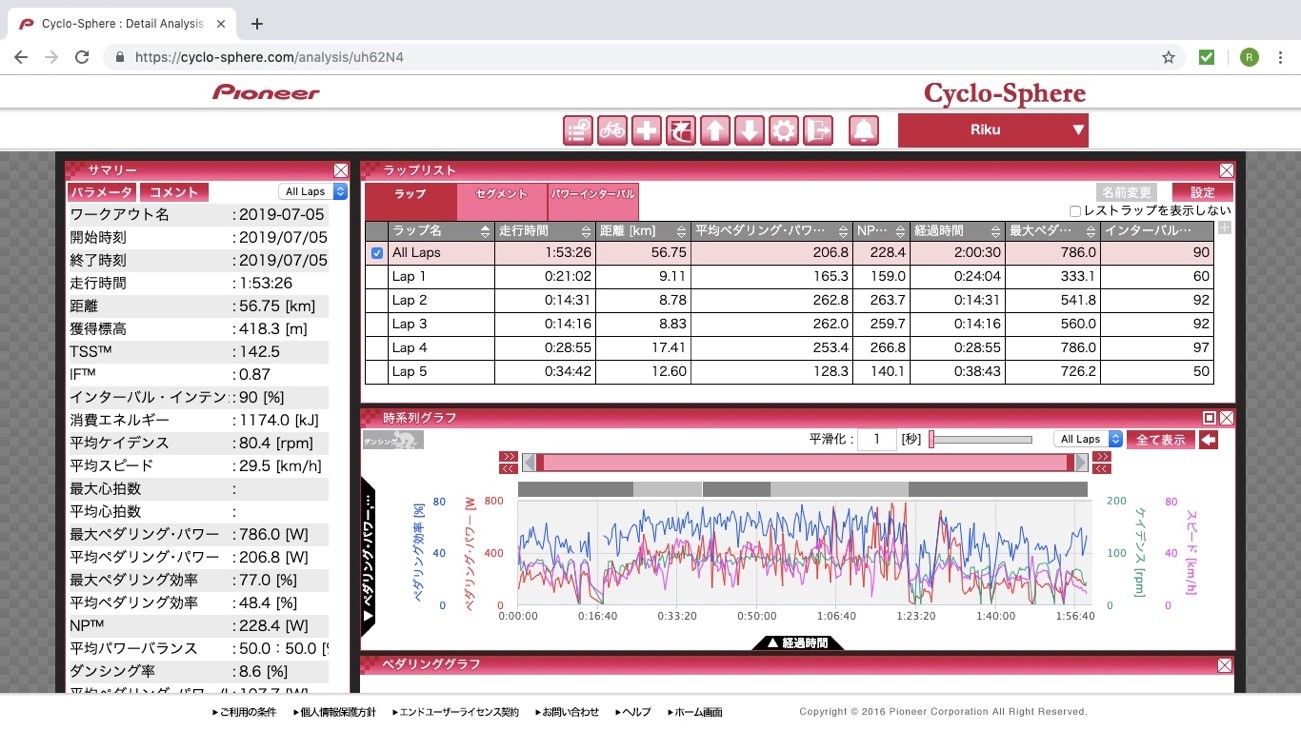 平均パワー:206.8w
