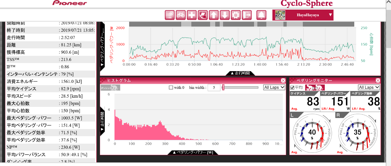 登りでつい踏んでしまいリカバリー強度から出てしまった。
