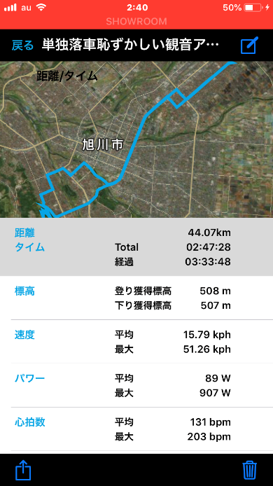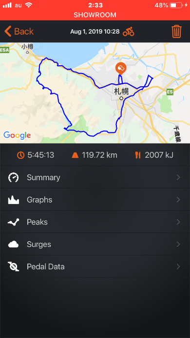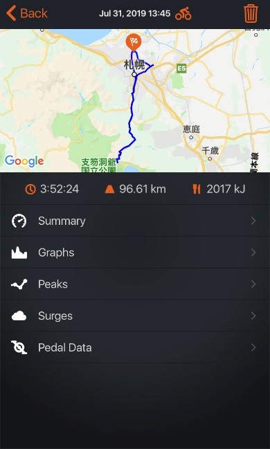 ロングライドをしようと思い、家をでました。看板に支笏湖とあり、聞いたことがあったので、行き当たりばったりでいってみました。すると登り、登り、また登りと96kmで獲得標高も1100m超える感じの山登りライドになりました(笑)山登りになったとたんだいぶ一生懸命登ってしまいました。記録はしていないですが、山頂に行くまで自分の頑張れる範囲で頑張りながら登りました。時間的に折り返さないといけないところでちょうど山頂付近だったのでそこで5分走して折り返しました。