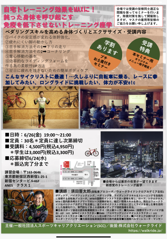 6月26日ペダリングスキルを高める身体作り&エクササイズin新宿(日時変更となりました) - 株式会社ウォークライド